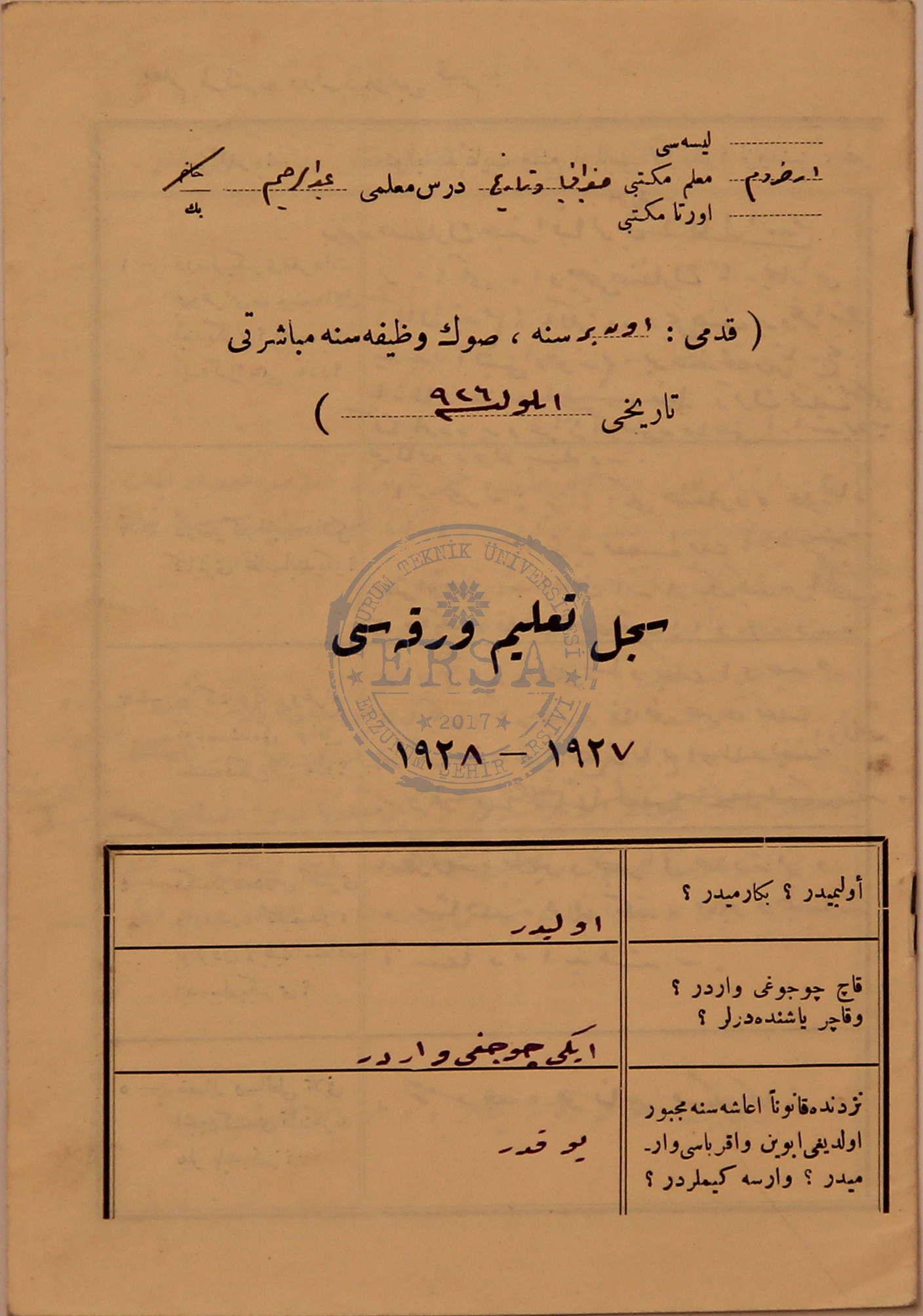 | dc.description.abstract | A. Şerif Beygu’nun 1927-1928 tarihine ait Sicil-i Talim Varakası | |