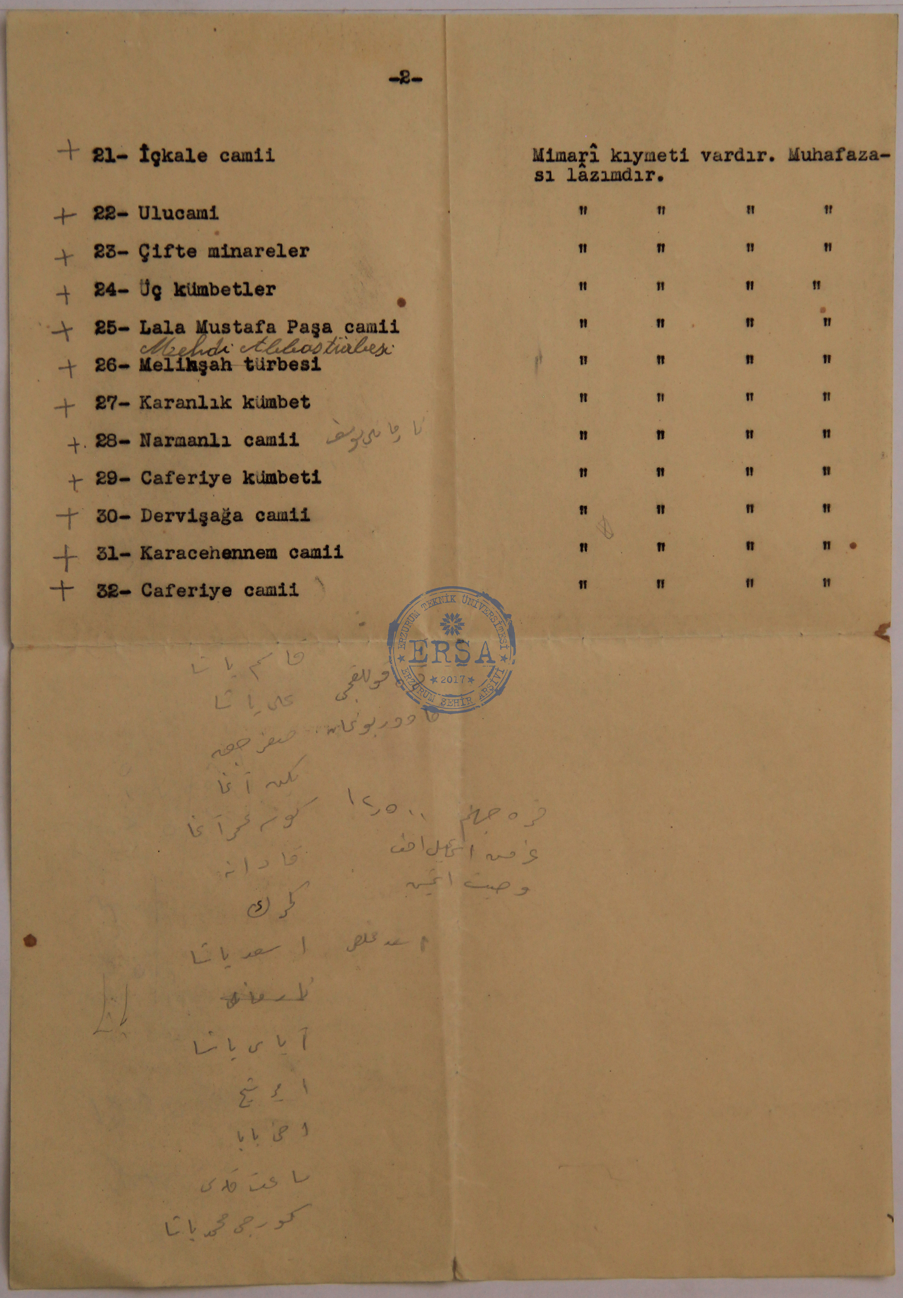 Evkaf Müdürlüğünün gönderdiği yazı Erzurum şehri Abideleri hakkında Beygu'nun mütalaası isteniyor.