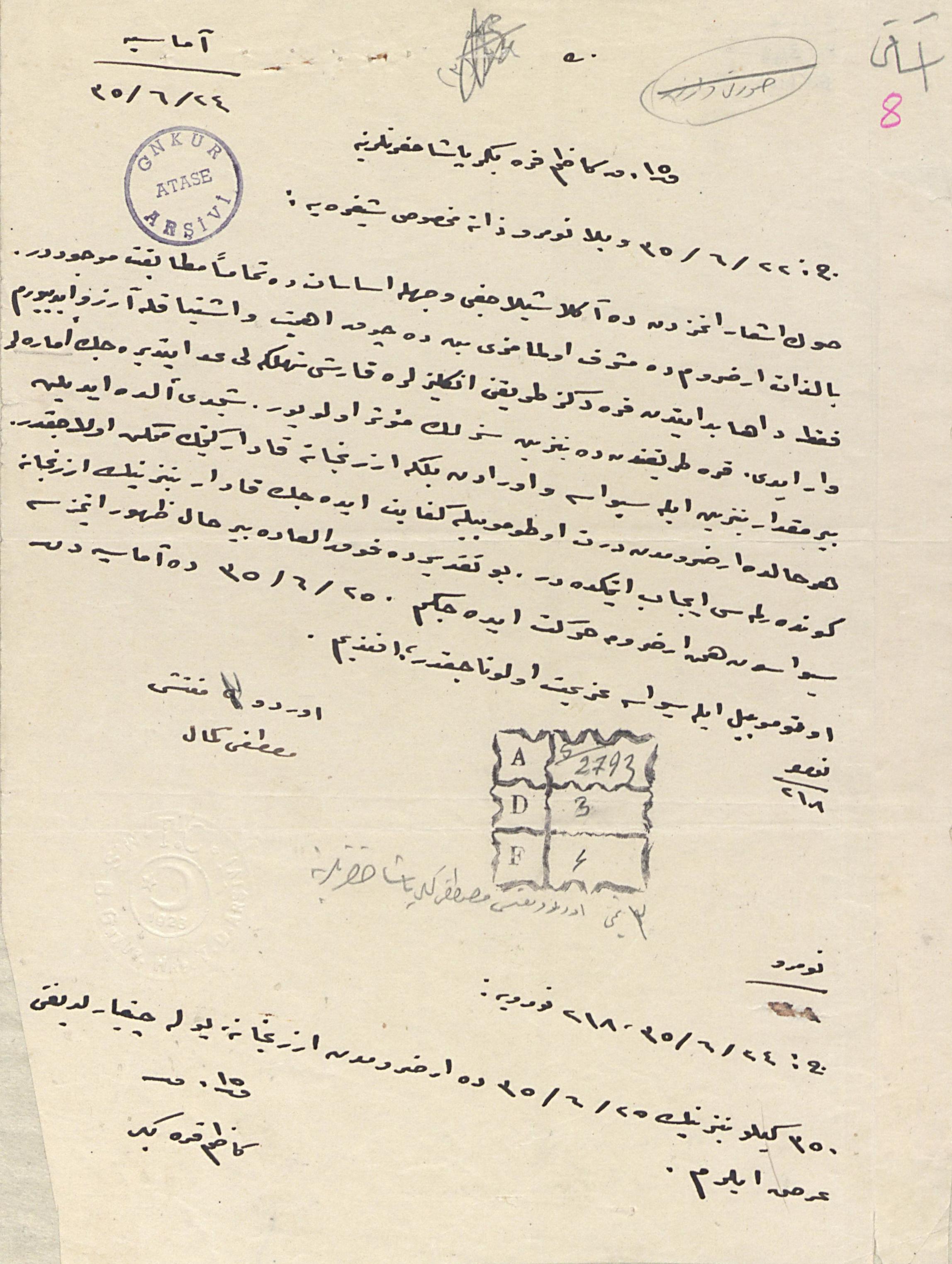 Mustafa Kemal Paşa ile Kâzım Karabekir Paşa arasında Erzurum'a gelmeden yolculuğu esnasında Kongrenin selahiyeti ile ilgili yaptığı yazışmalar- 24-26 /6/ 1335
