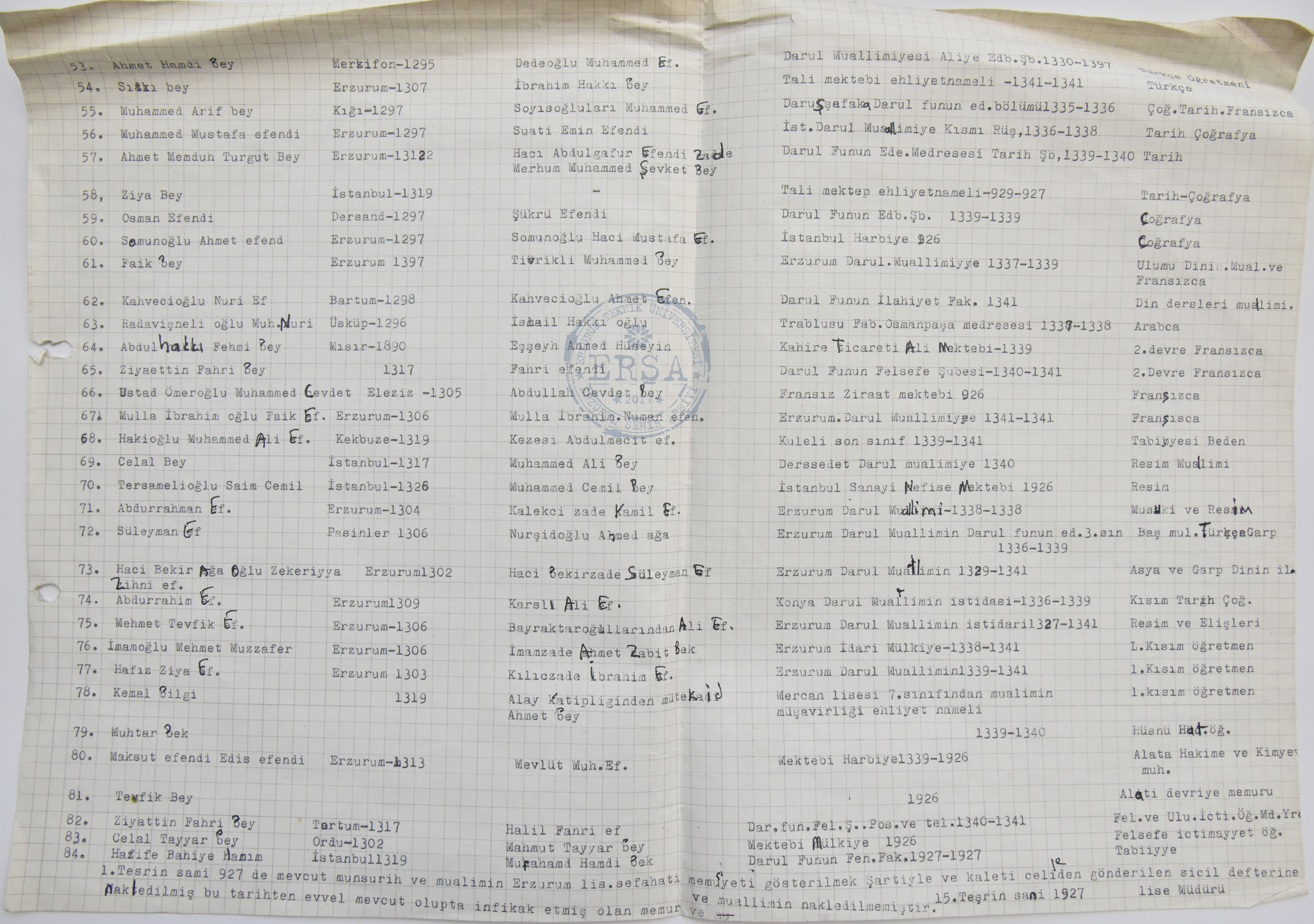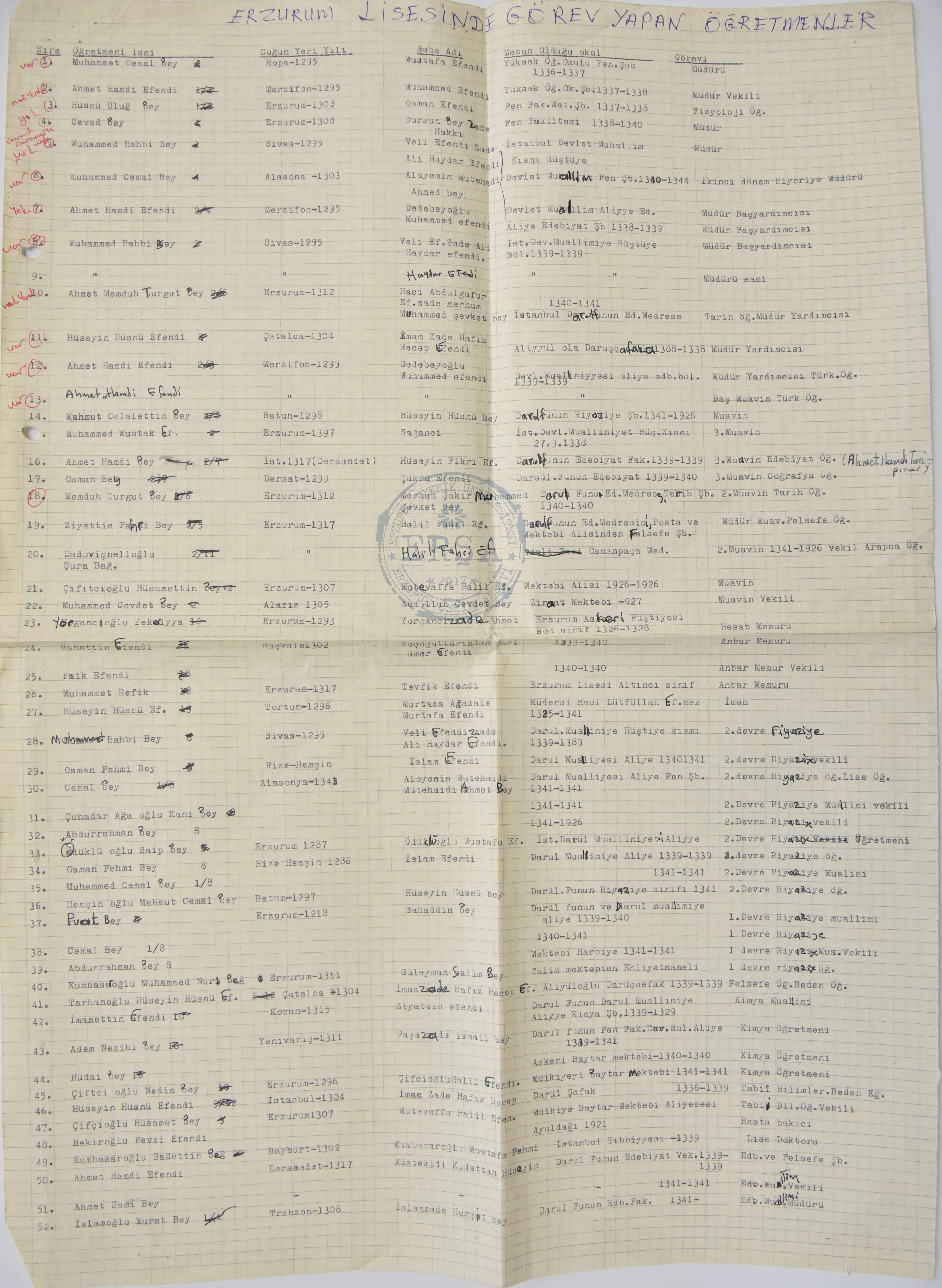 Erzurum Lisesinde görev yapan Öğretmenler