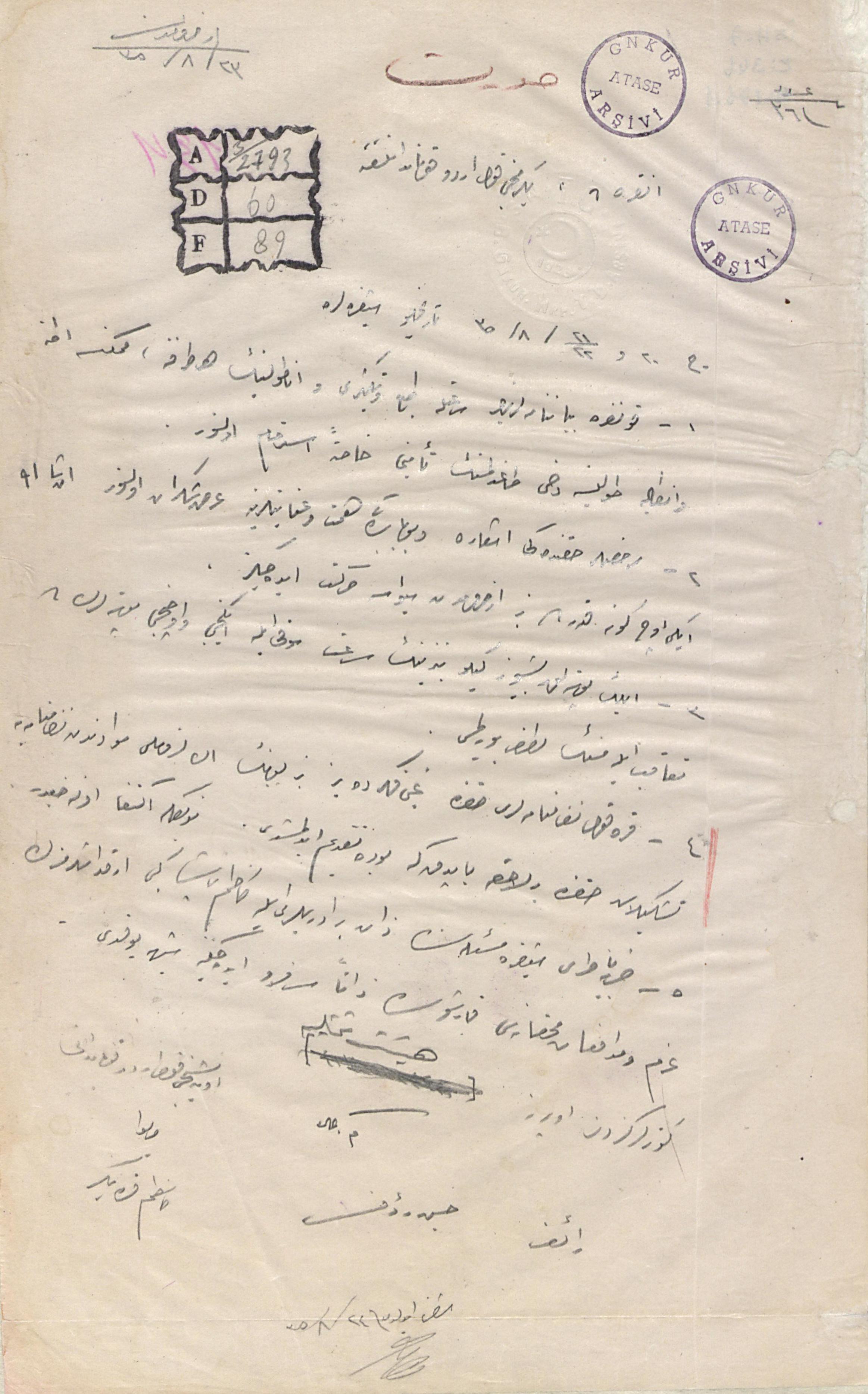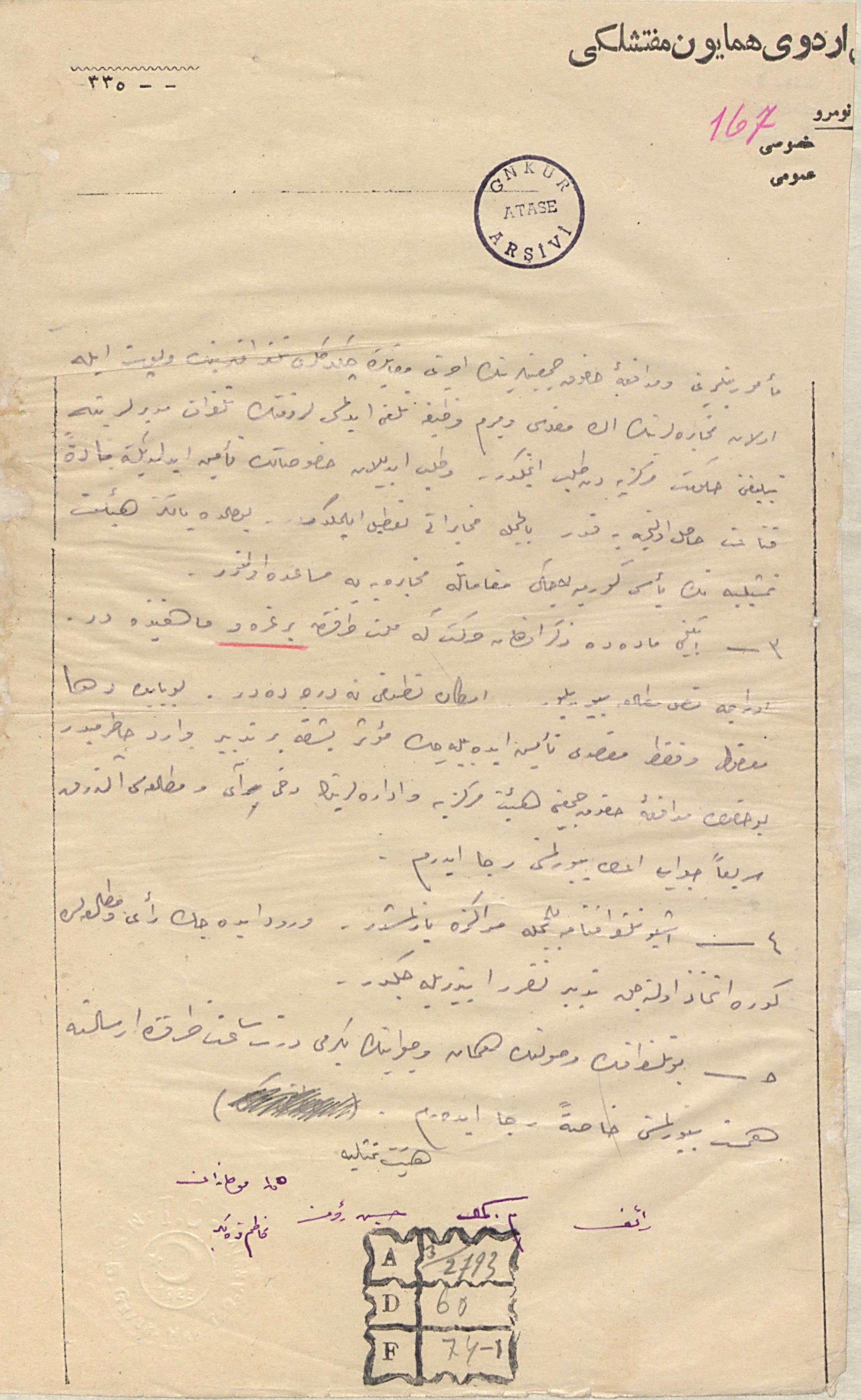 On Beşinci Kolordu Kumandanı Mirliva Kâzım Karabekir Paşa'nın Erzurum Kongresinden sonra yapılan engellemelere karşı gerekli tedbirlerin alınması hususunda diğer Kolordularla yaptığı yazışmalar- 11/8/1335, 18/8/1335, 23/8/1335